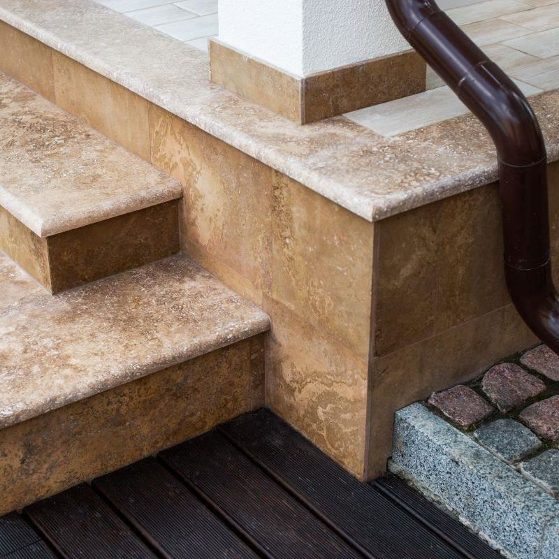 Daca se slefuieste, respectiv se lustruieste, prin acoperirea porilor cu praf de ciment, suprafata travertinului devine la fel de fina ca marmura.